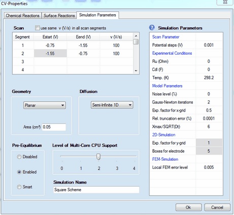 Mechanism & Simulation Parameters refer to a Square-Scheme